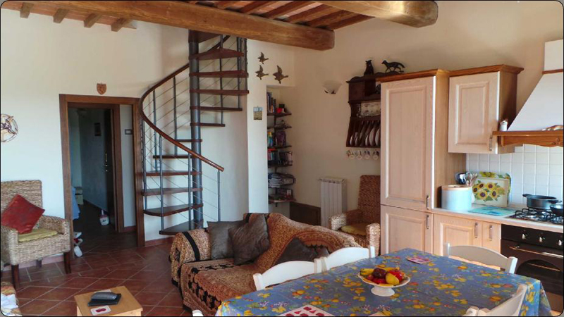 We have furnished Tuscan Skies to a very high standard. It is our Italian home when we visit, not an empty, small vacation rental. Set on two floors joined by a spiral staircase, it has three bedrooms (each with its own shower room), and two lounge rooms which can be used as extra bedrooms. There are two large living/kitchen areas and a small private garden with a wonderful view.